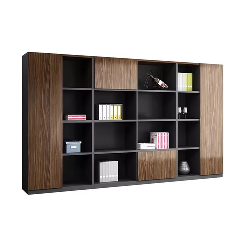 ตู้เก็บเอกสารไม้คุณภาพสูงทันสมัยชุดเฟอร์นิเจอร์ตู้หนังสือสำนักงานพื้นหลังเรียบง่ายตู้เก็บเอกสารพร้อมแผงสไตล์
