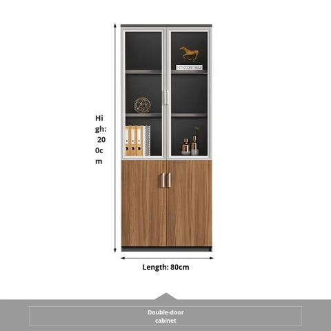 ตู้เก็บเอกสารไม้สำนักงานพร้อมชั้นวางหนังสือกระจกที่เก็บถาวรและจัดเก็บข้อมูลตู้เสื้อผ้า