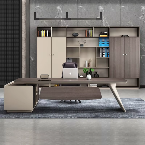 โต๊ะผู้บริหารทำจากไม้เฟอร์นิเจอร์สำนักงานโต๊ะผู้บริหารรูปตัว L หรูหราทันสมัย